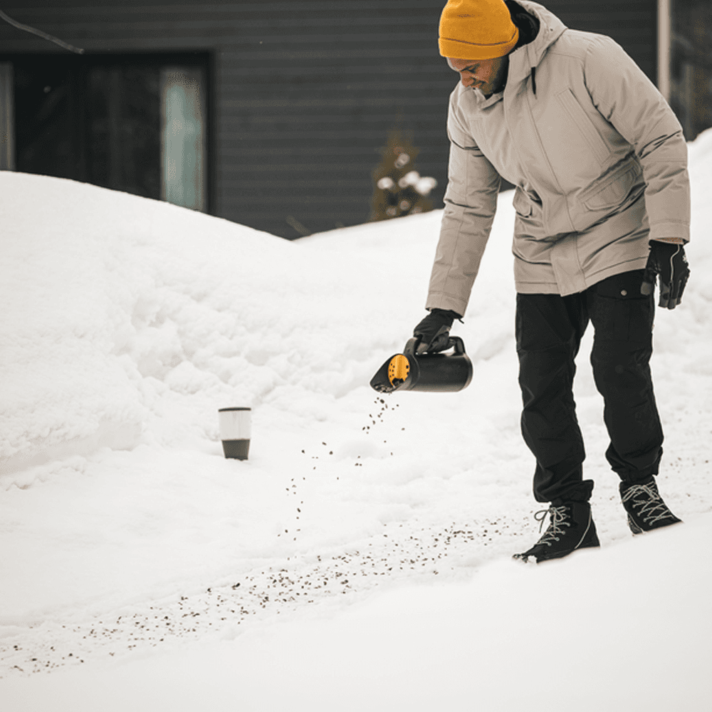 - Dreifarinn er frábær til að dreifa á hagkvæman hátt sandi, salti, áburði og fleiru