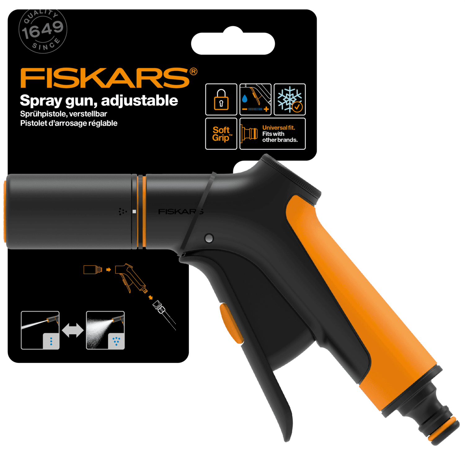 - Stiglaus stilling á úðagerð – þægilegt stammt SoftGrip™ yfirborð á framhluta